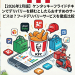 2026年2月4日 / 最終更新日時 : 2026年2月4日 admin menu 【2026年2月版】ケンタッキーフライドチキンでデリバリーを頼むとしたらおすすめのサービスは?フードデリバリーサービスを徹底比較 はじめに ケンタッキーフライドチキン(KFC)のあのジューシーなオリジナルチキンを自宅で楽しみたい――そんな時に便利なのがデリバリーサービスです。しかし、2026年2月現在、ケンタッキーを注文できるデリバリーサービスは複 […]